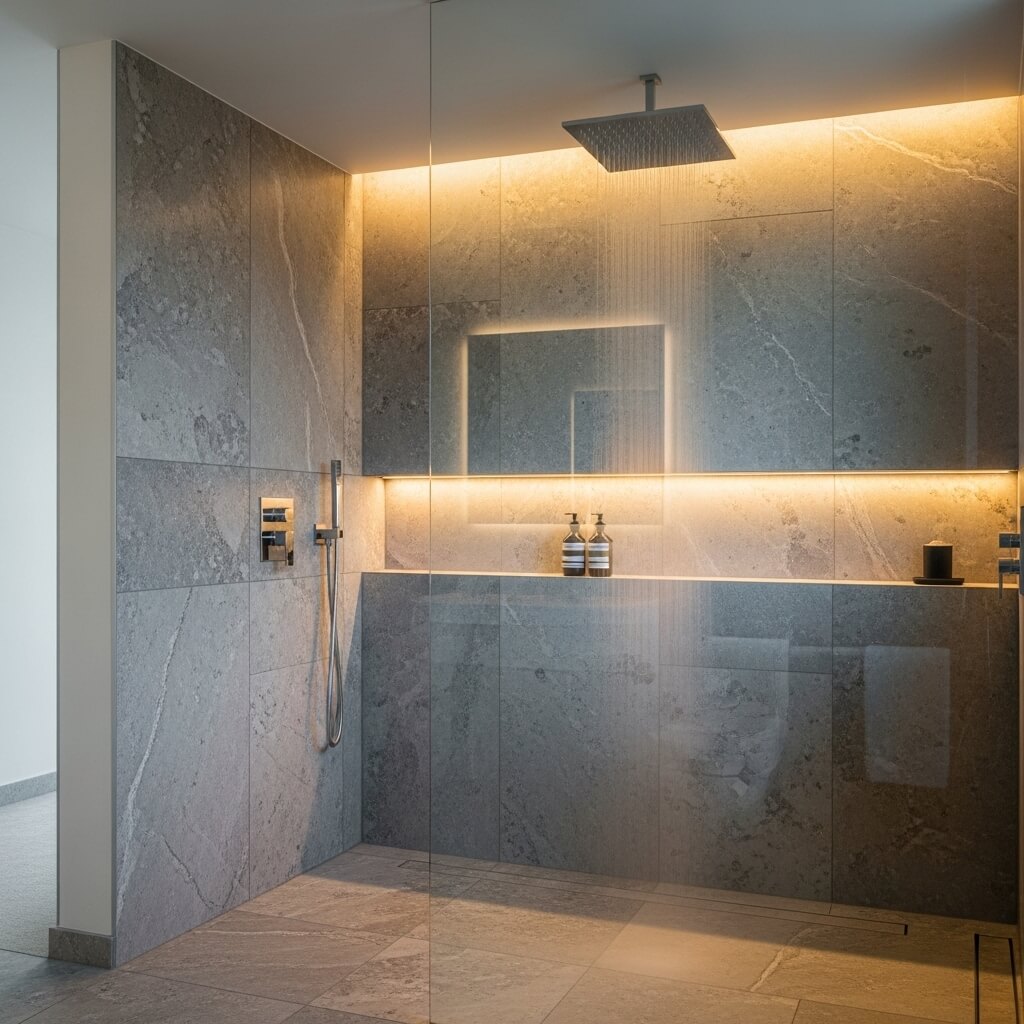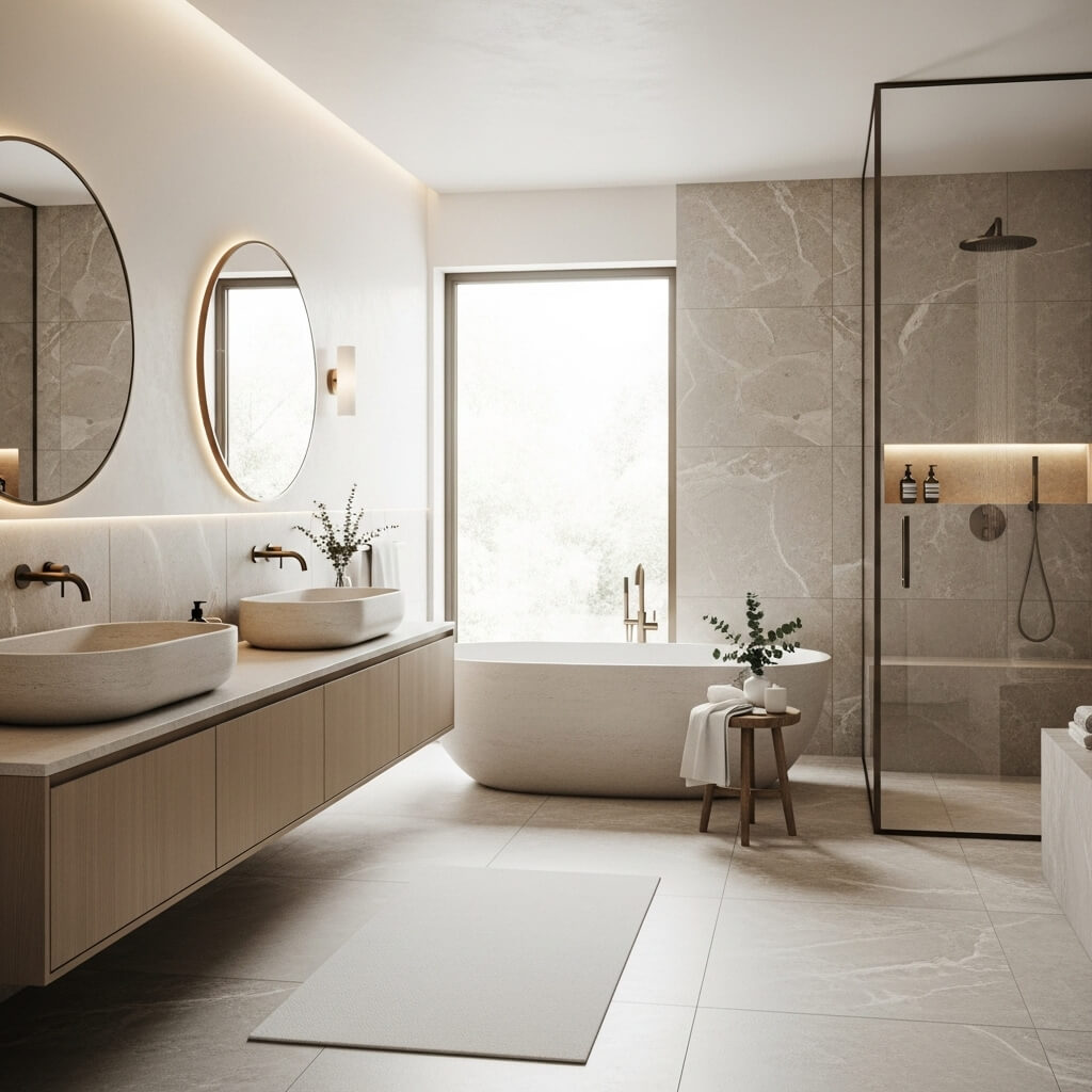 Design upgrade: Use large-format tiles, natural stone, or textured finishes to add depth and elegance without visual clutter.