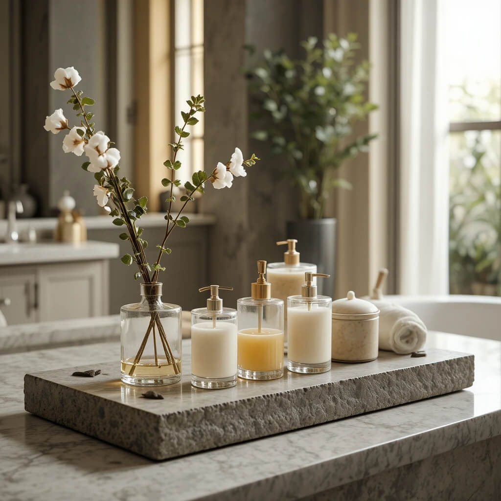 Hotels never overcrowd their bathrooms with decor. Instead, they focus on a few carefully chosen accessories that feel intentional.