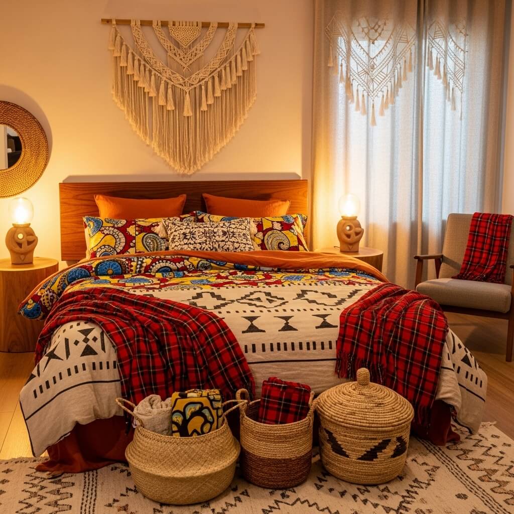 15. African-Inspired Bedding for a Cozy Bedroom Glow