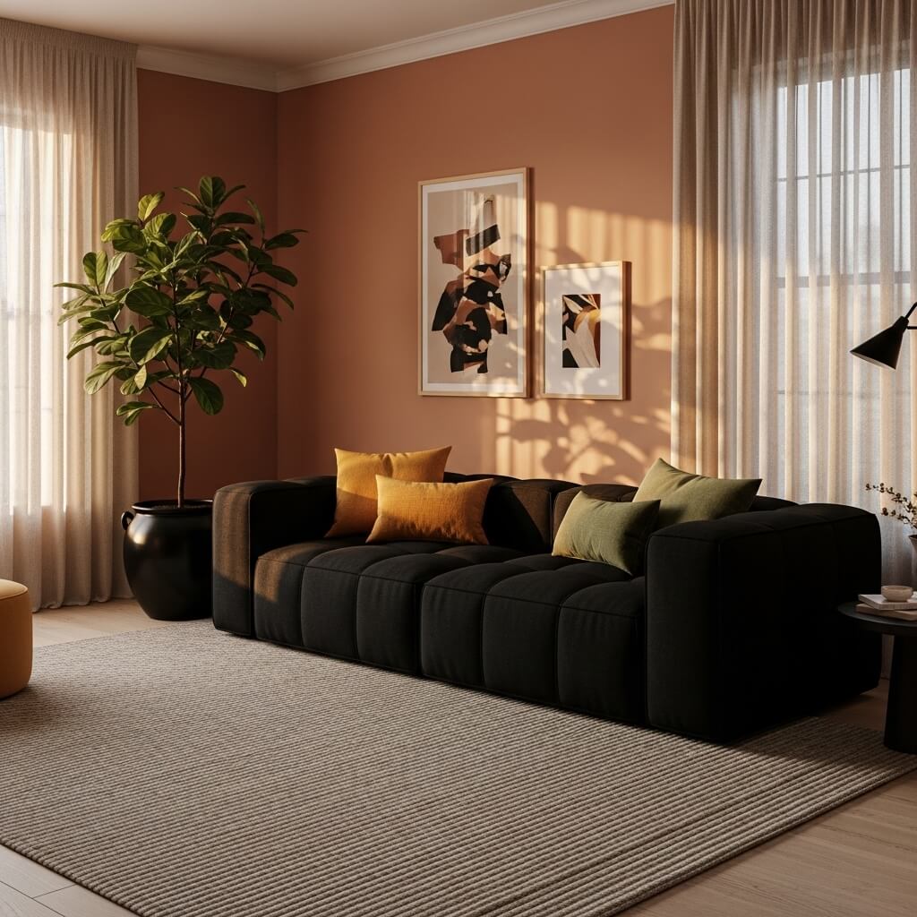 - Pair bold colors (like mustard or terracotta) with neutrals to keep the space modern.