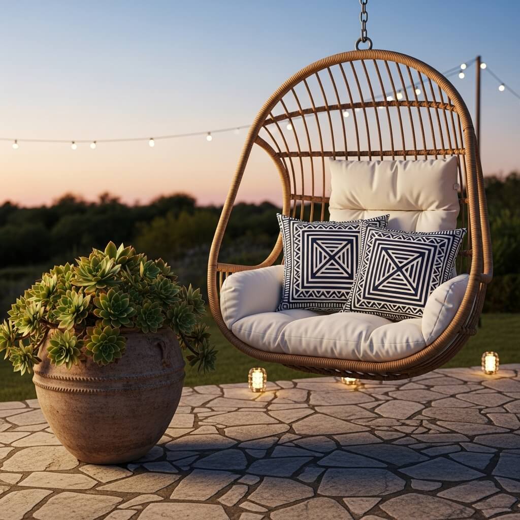 Pair the chair with a neutral sofa, woven side table, and a few indoor plants to keep the vibe elegant — not busy.