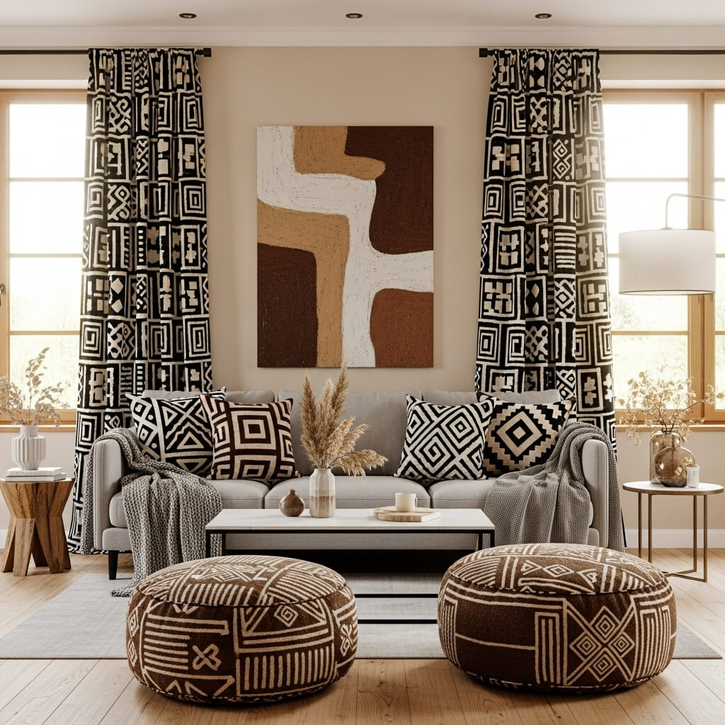 Mud cloth patterns bring clean, geometric lines to your space — perfect for modern minimalists.