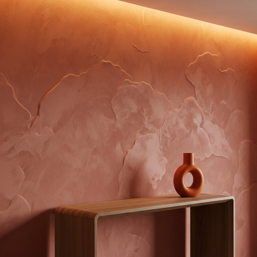 2. Textured Walls: Limewash, Clay, or Tadelakt Finishes