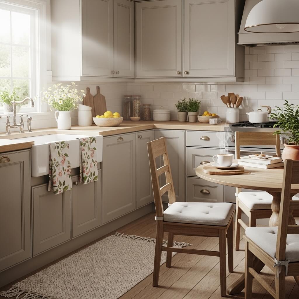 Swapping textiles is one of the fastest seasonal upgrades you can make. Spring kitchen decor inspiration favors lighter fabrics and brighter patterns.